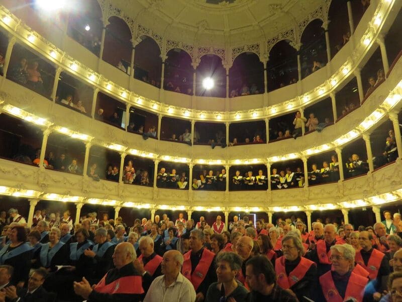 En el Teatro Jofre de Ferrol (La Coruña) – Participación en la Primera Jornada del IV Encuentro de Coros Universitarios Senior en Galicia. Con los Coros Aulas de Bilbao, PUMUO de Oviedo, de la Experiencia de Burgos (UBU) y de Palencia (UVA), Adayeus de La Coruña y Ferrol. 11-04-2019